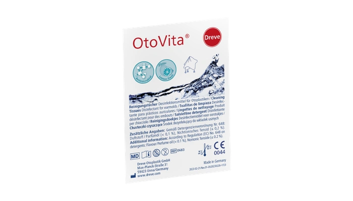 OtoVita® tīrīšanas salvetes ir paredzētas dzirdes sistēmu un austiņu ārējai kopšanai un dezinfekcijai. Mitrās salvetes nesatur spirtu. Ideāli piemērotas arī dzirdes vai pretšļakatu ūdens aizsardzības līdzekļu dezinfekcijai.